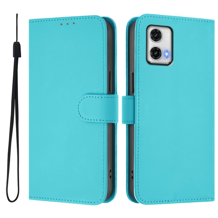 Funda Piel Sintética con Cordón para Motorola Moto G73 5G (Azul Lago)