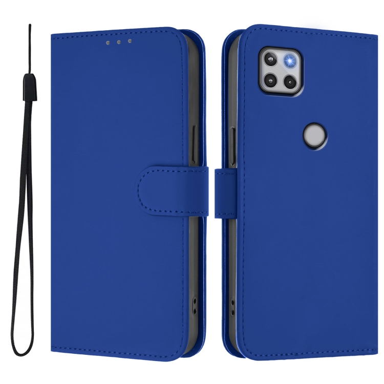 Funda de Piel Sintética con Cordón para Motorola One 5G Ace (Azul Oscuro)