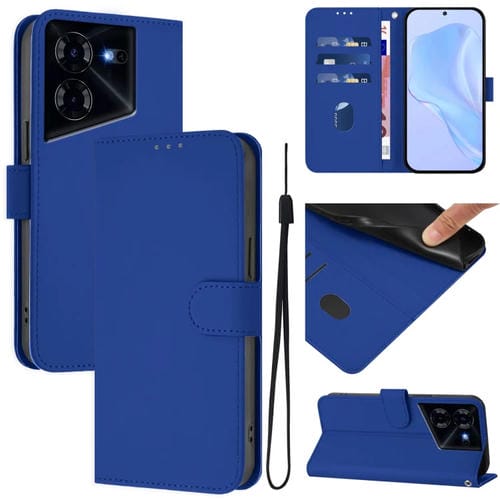 Funda de Piel para Tecno Pova 5 Pro 5G con Textura Liso y Cordón (Azul Oscuro)