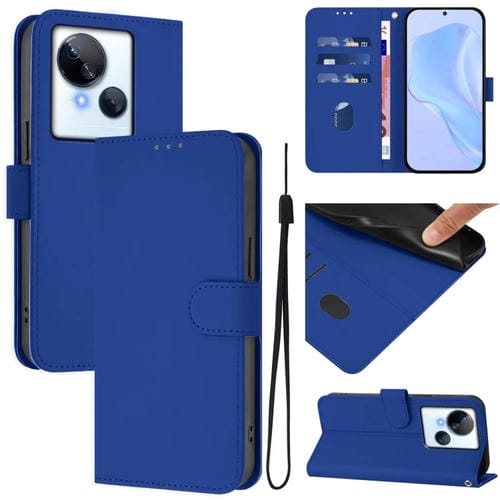 Funda de Piel con Textura y Cordón para Tecno Spark 10 5G (Azul Oscuro)