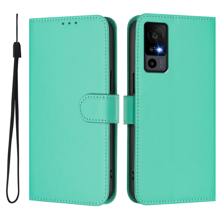 Funda de Piel Sintética con Cordón para Teléfono TCL 40 R 5G (Verde)