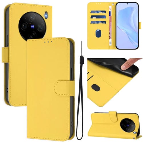 Funda de Piel Sintética con Cordón para Teléfono Vivo X100S 5G (Amarillo Limón)