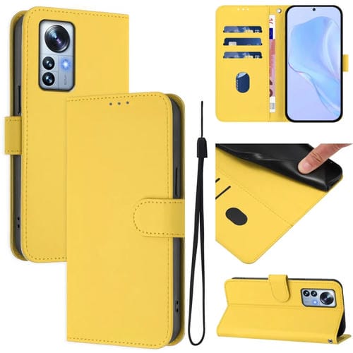 Funda de Piel Sintética con Cordón para Xiaomi 12S Pro/12 Pro (Amarillo Limón)