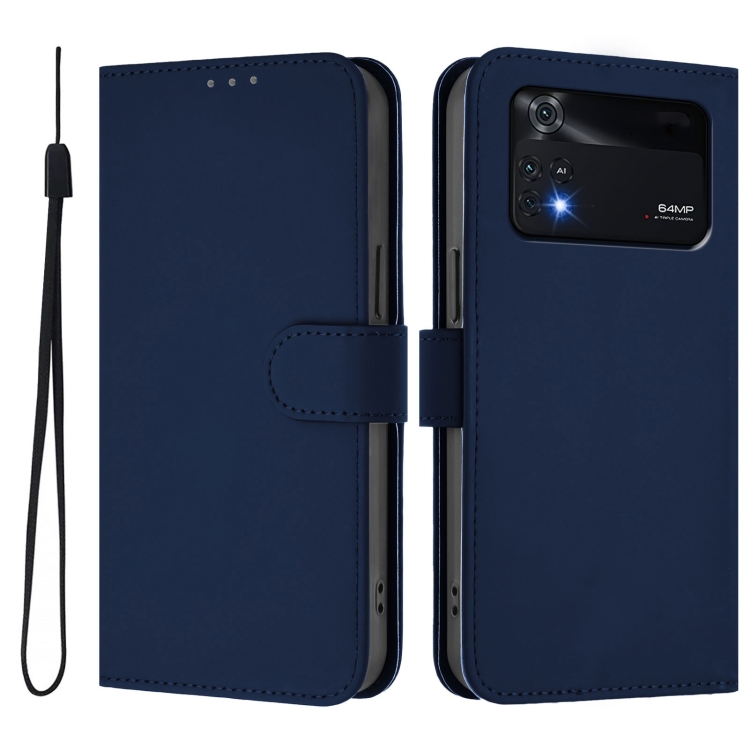 Funda de Piel Sintética con Cordón para Xiaomi Poco M4 Pro 4G (Azul Marino)