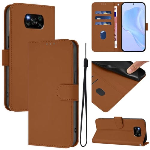 Funda de Piel Sintética con Cordón para Xiaomi Poco X3 Pro / X3 Nfc / X3 (Marrón)