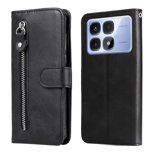 Funda de Piel Sintética con Cremallera y Textura de Becerro para Redmi K70 Ultra (Negra)
