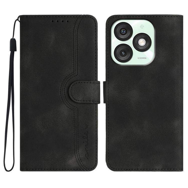 Funda Piel Sintética Itel A50 Diseño Corazón (Negra) para Teléfono