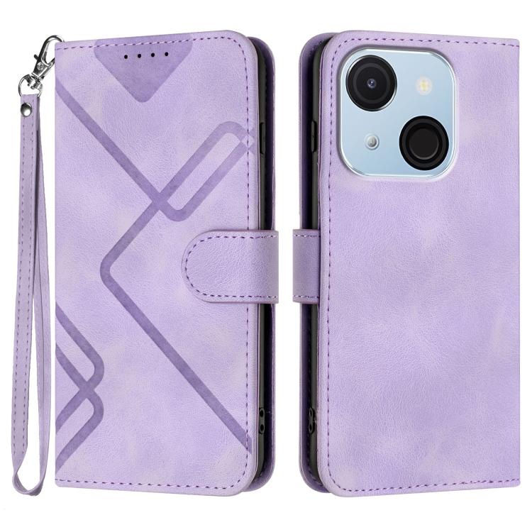 Funda de Piel Sintética para Teléfono Itel A50C con Diseño de Líneas (Morado Claro)