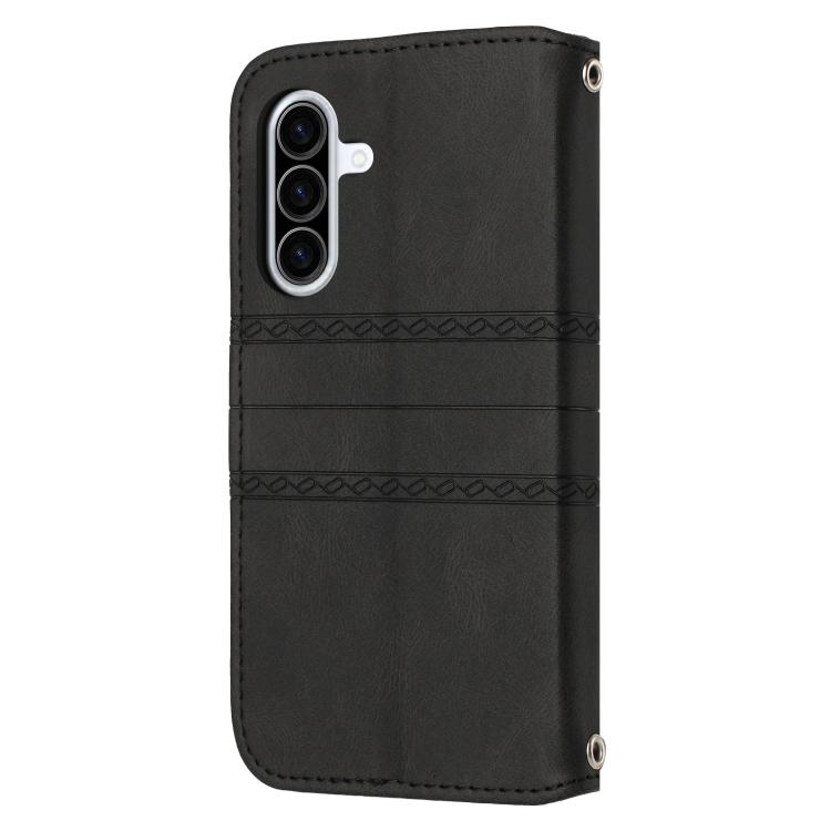 Funda de piel sintética con diseño de rayas en relieve para Samsung Galaxy A17 5G/A26 5G (negra)