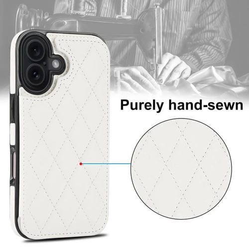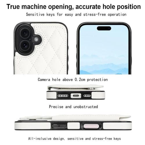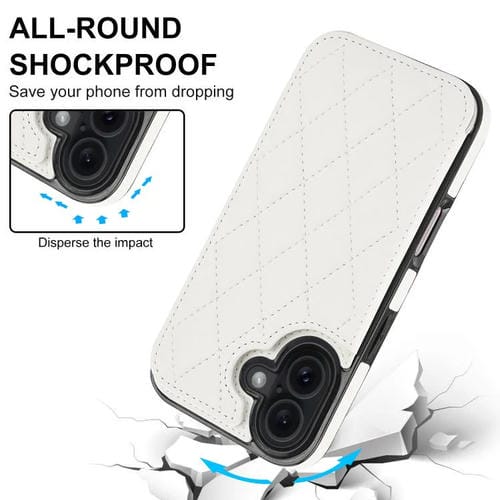 Funda de piel sintética con doble hebilla y diseño rómbico para iPhone 17 (blanca)