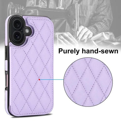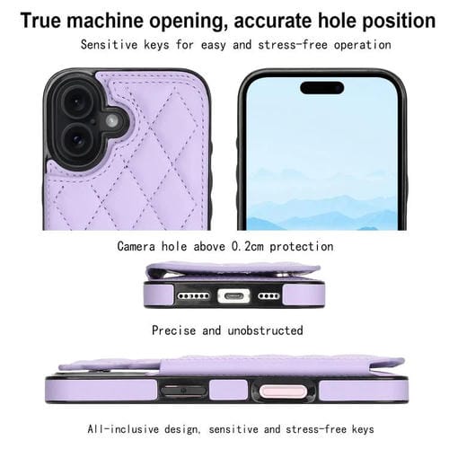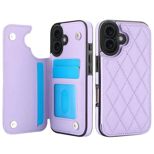 Funda de piel sintética con doble hebilla y diseño rómbico para iPhone 17 (morado)