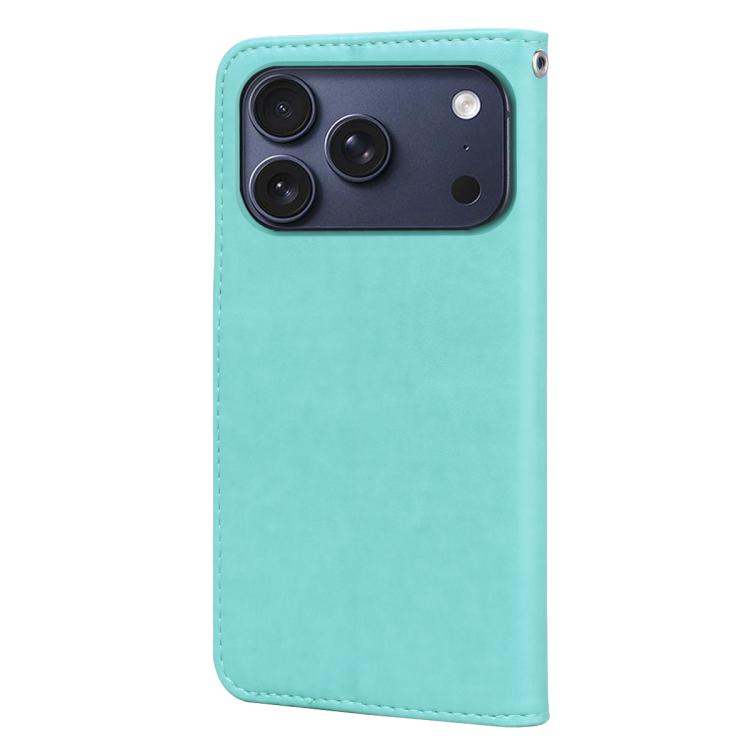 Funda de piel sintética con tapa y relieve rosa para iPhone 17 Pro (verde)