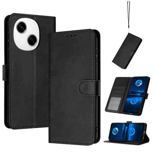 Funda de Piel Sintética con Tapa para Tecno Spark Go 1 (Negro)