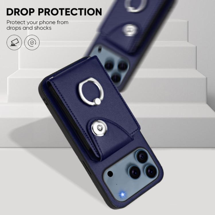 Funda de PU con cordón para iPhone 17 Pro, con tarjetero, anillo y soporte (azul)