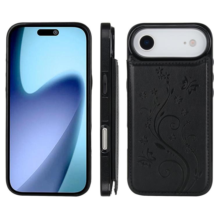 Funda de PU con doble hebilla y estampado de mariposa para iPhone Air (negra)