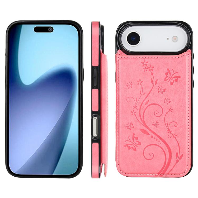Funda de PU con doble hebilla y estampado de mariposa para iPhone Air (rosa)