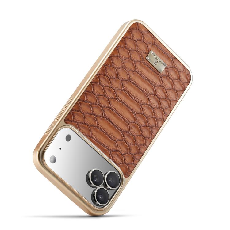 Funda de PU galvanizada con textura de pitón Fierre Shann para iPhone 17 Pro (marrón)