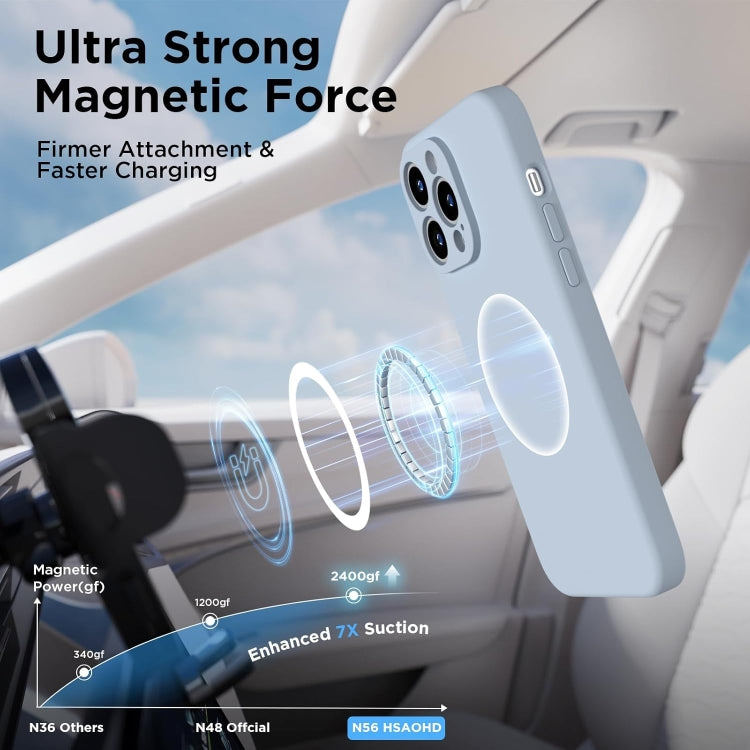 Funda de Silicona con Ventosa Magsafe para iPhone 16 con Película de Pantalla (Azul Sierra)