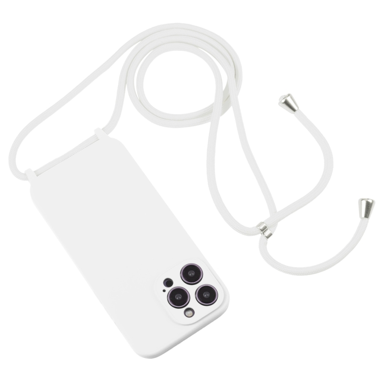 Funda de Silicona Líquida con Cordón Cruzado para iPhone 15 Pro (Blanco)
