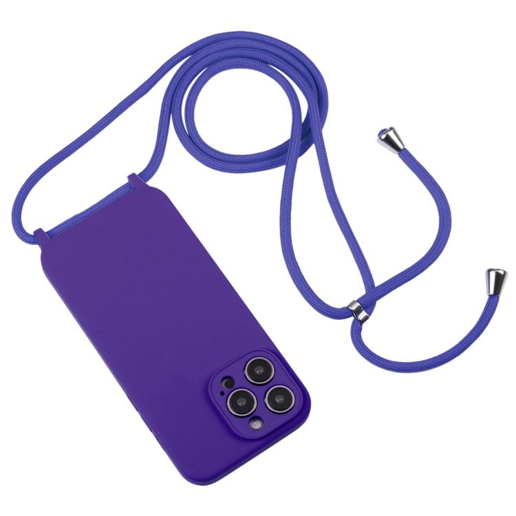 Funda de silicona líquida con correa cruzada para iPhone 17 (morada)