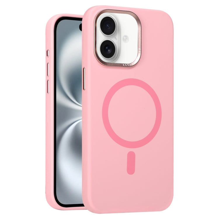 Funda de Silicona Líquida con Marco de Lente de Metal para iPhone 16 (Rosa)