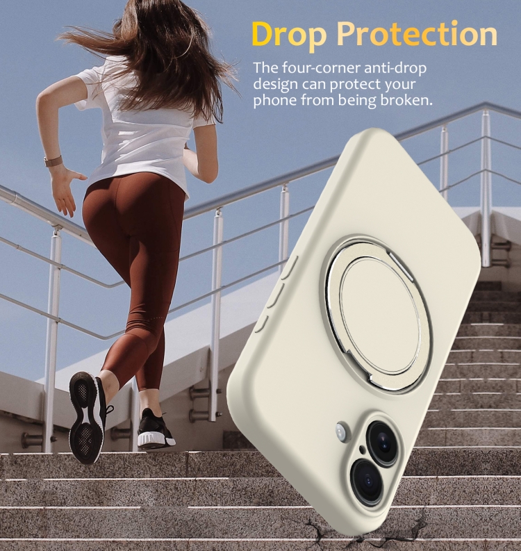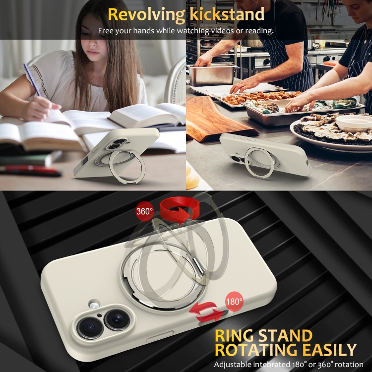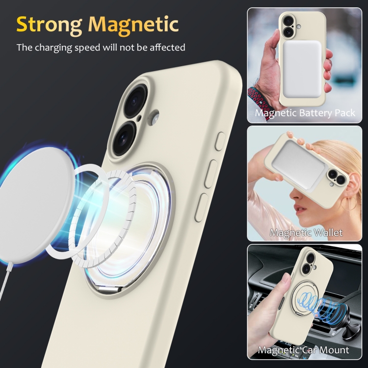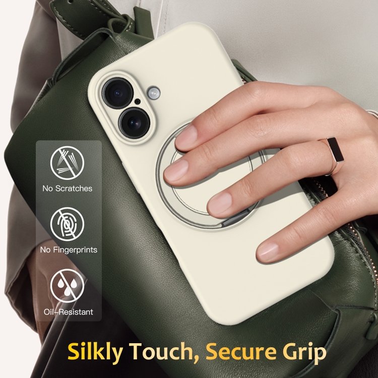 Funda de Silicona Líquida Magsafe para iPhone 16 con Soporte Giratorio (Blanca)