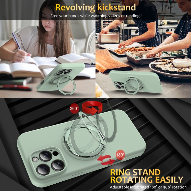 Funda de Silicona Líquida Magsafe para iPhone 16 Pro con Soporte Giratorio (Verde)