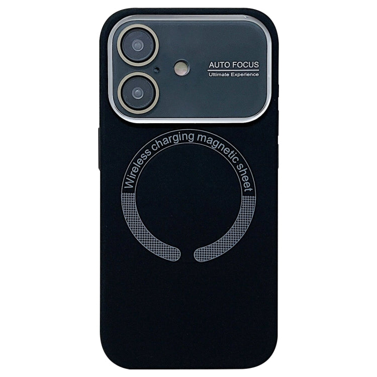 Funda de Silicona Magsafe para iPhone 16 con Lente de Vidrio Acrílico Ventana Grande (Negra)