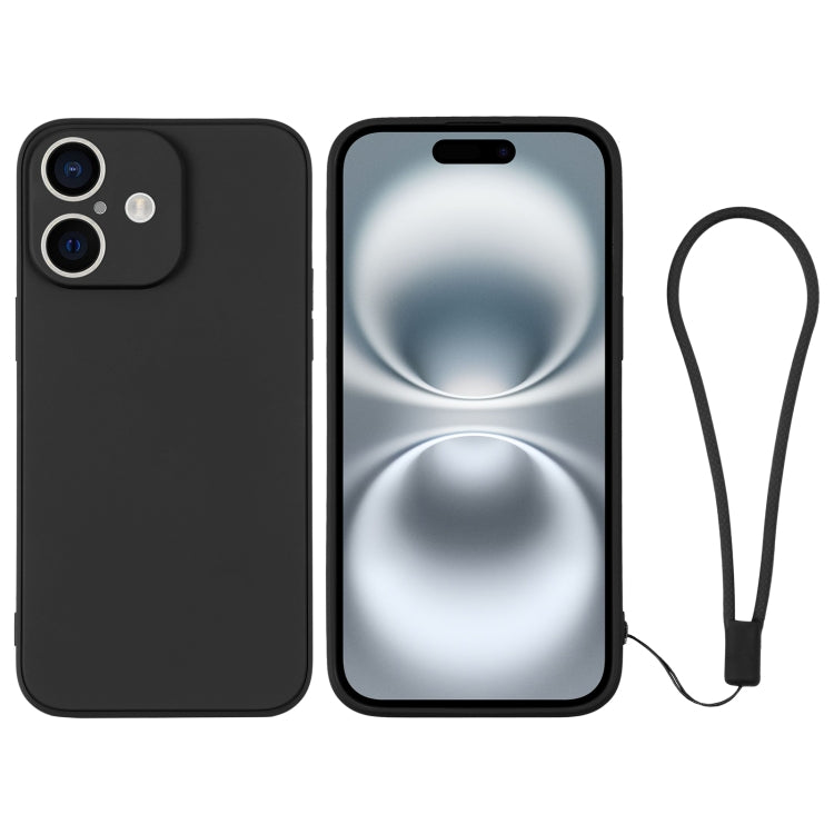 Funda de Silicona para iPhone 16 con Correa para la Muñeca (Negra)