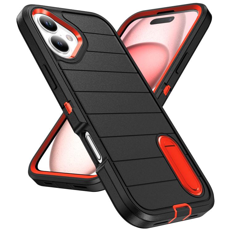 Funda de Silicona y PC Resistente con Soporte para iPhone 16 Defender Gen2 (Negro y Naranja)