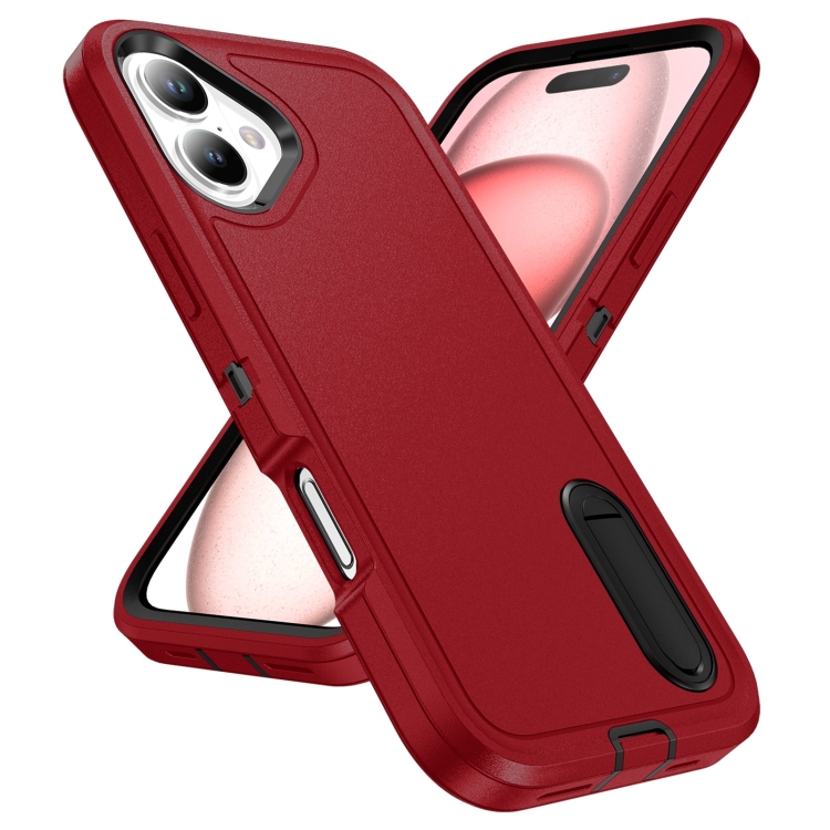 Funda de Silicona y Policarbonato para iPhone 16 Plus con Soporte (Rojo y Negro)