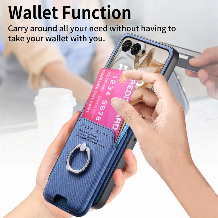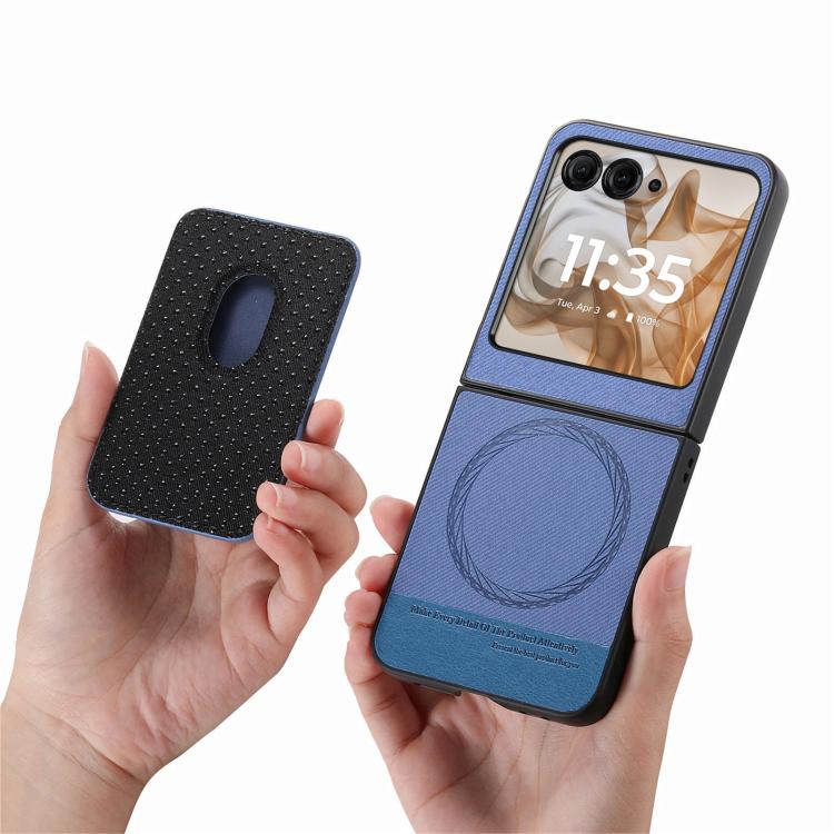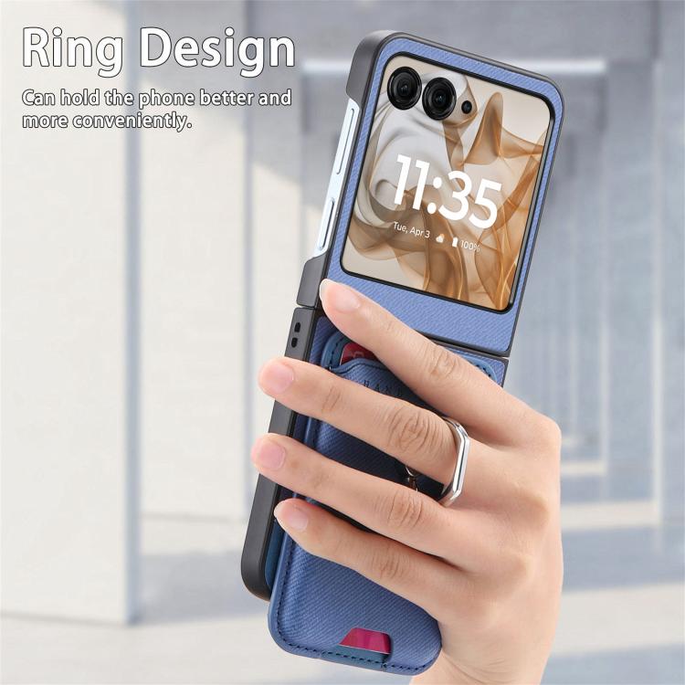 Funda de tela sarga con anillo magnético para Motorola Moto Razr 50/60 (azul)