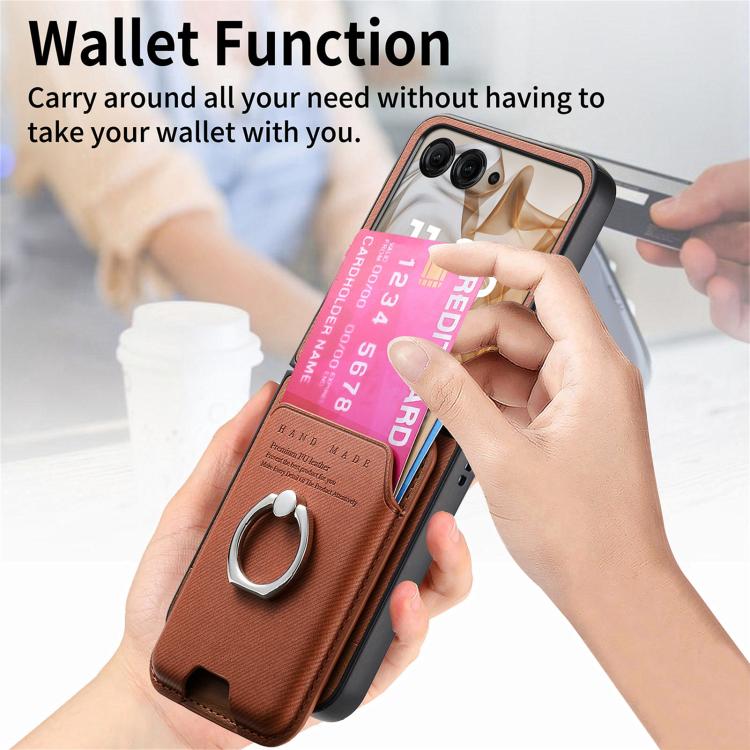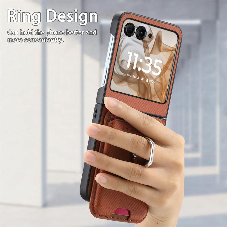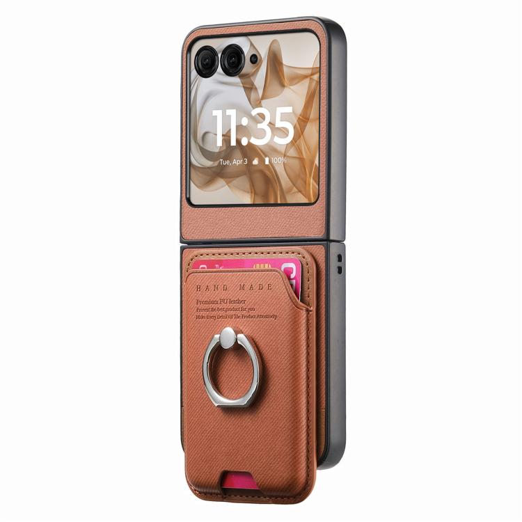 Funda de tela sarga con anillo magnético para Motorola Moto Razr 50/60 (marrón)
