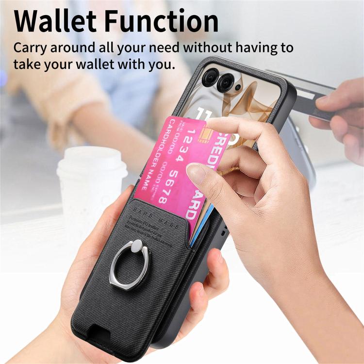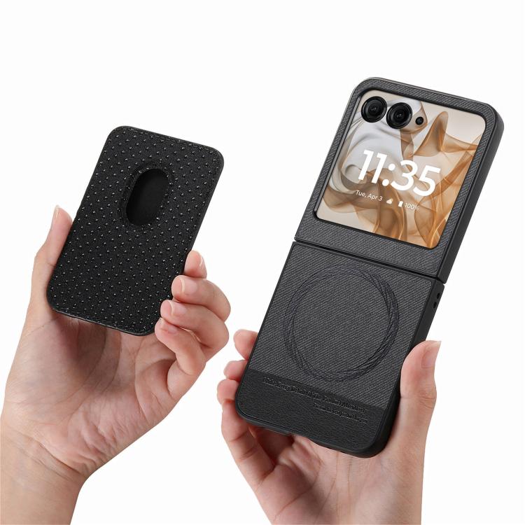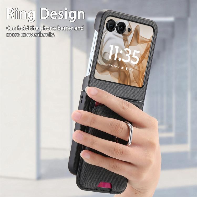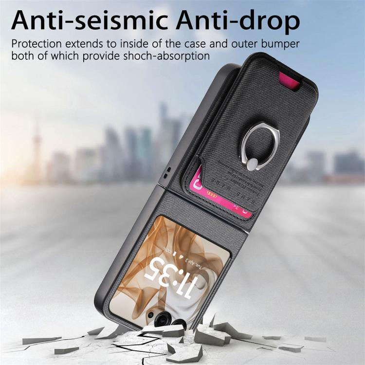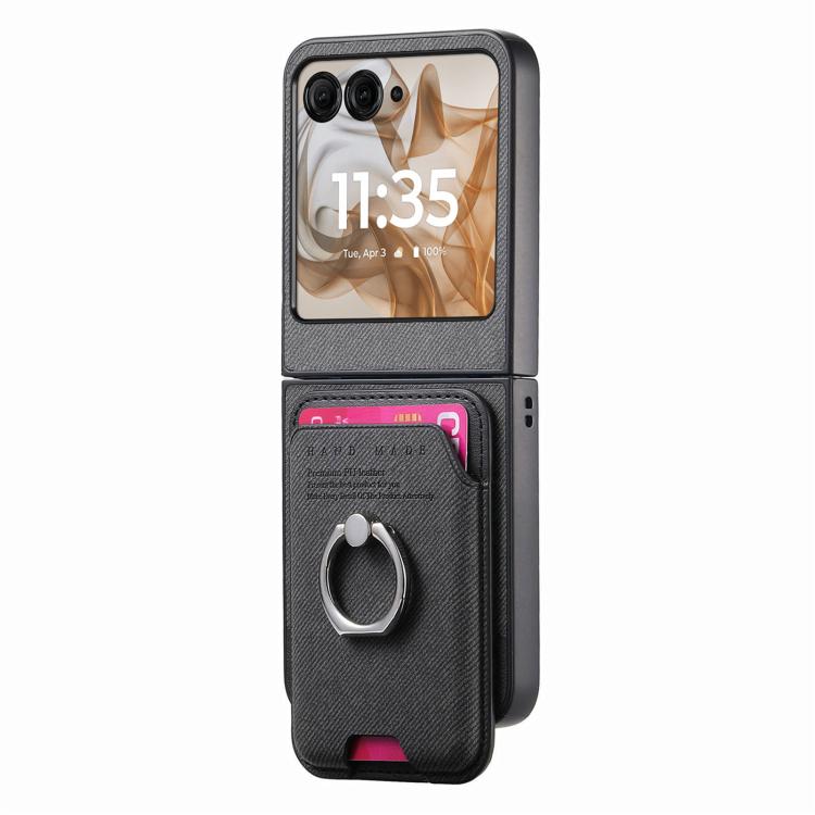 Funda de tela sarga con anillo magnético para Motorola Moto Razr 50/60 (negra)