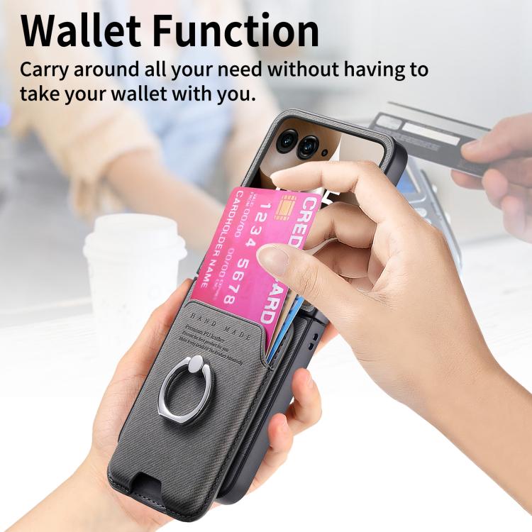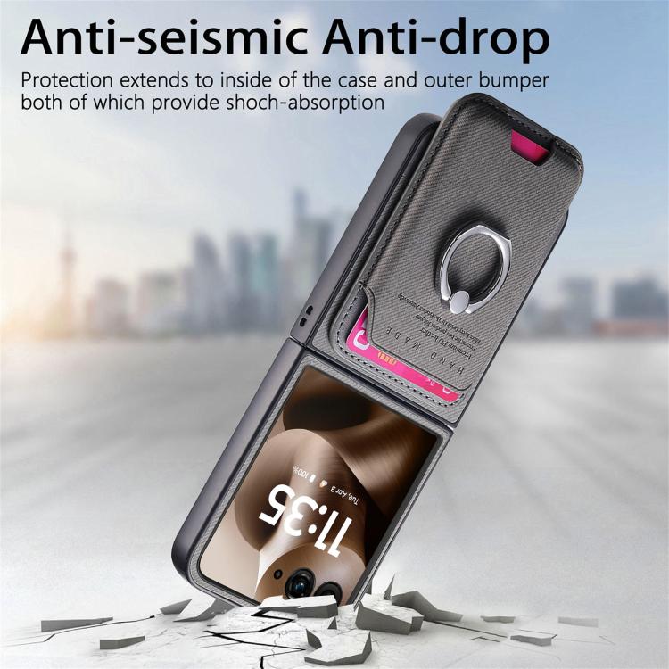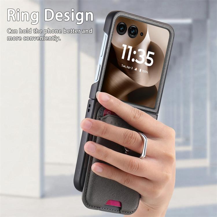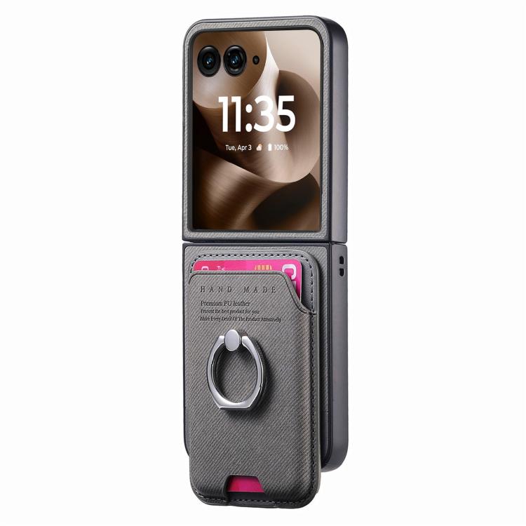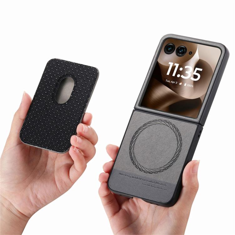 Funda de tela sarga con anillo magnético para Motorola Moto Razr 60 Ultra (gris)