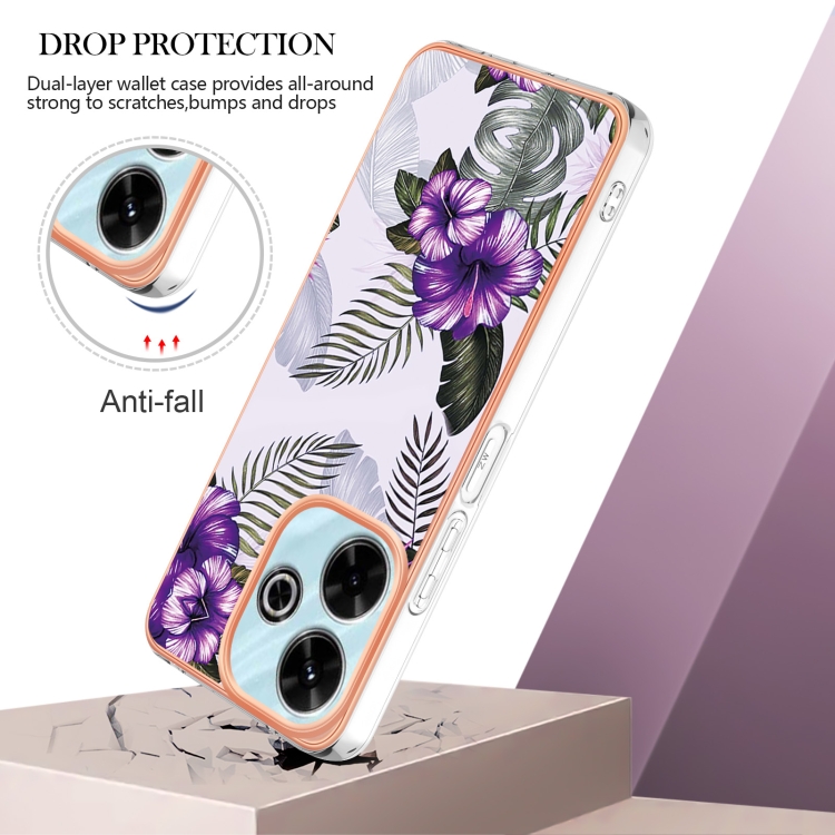 Funda de Teléfono con Galvanoplastia Imd TPU para Redmi 13 4G (Flor Morada)