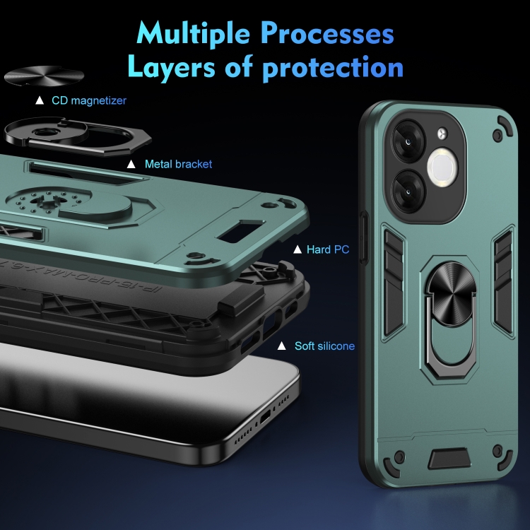 Funda de Teléfono Itel A80 con Soporte de Anillo de Metal a Prueba de Golpes (Verde)