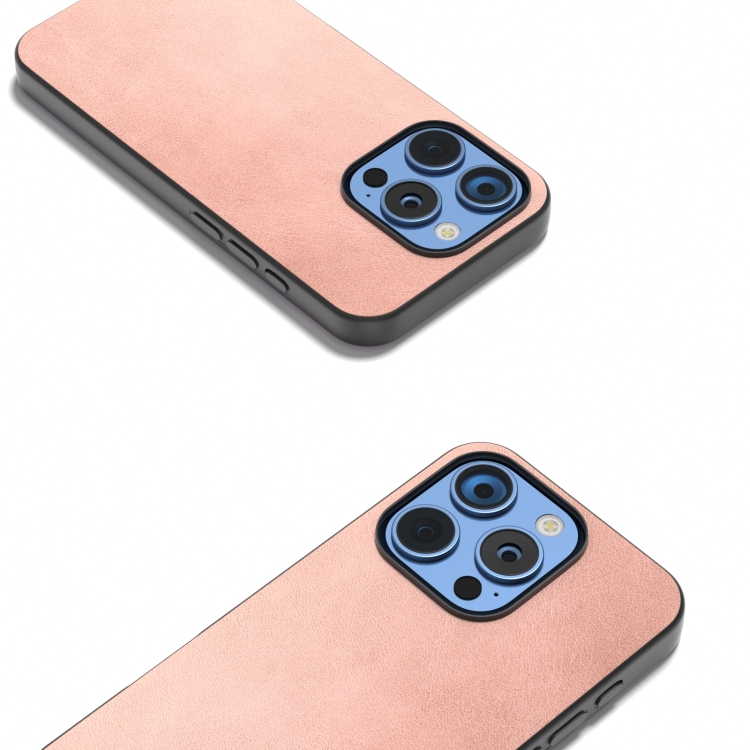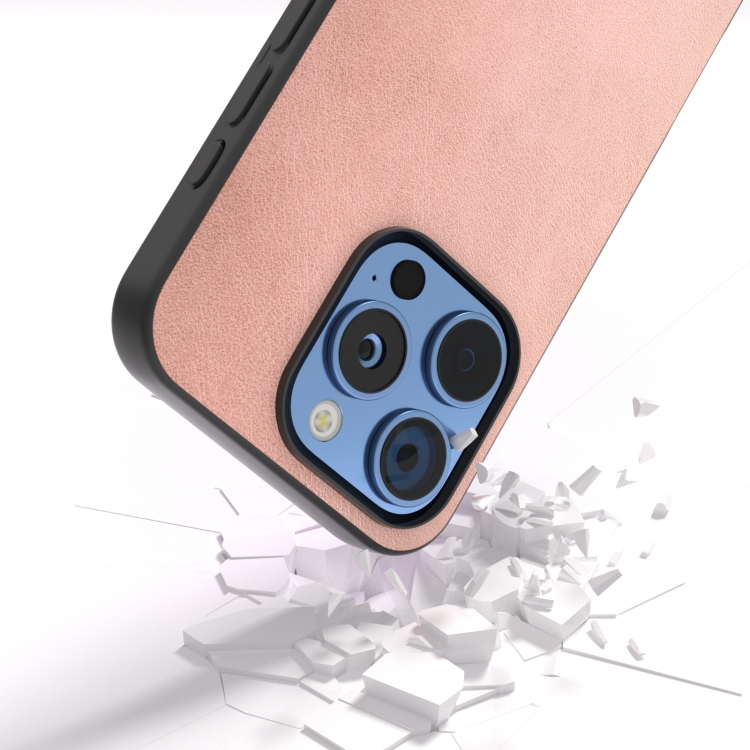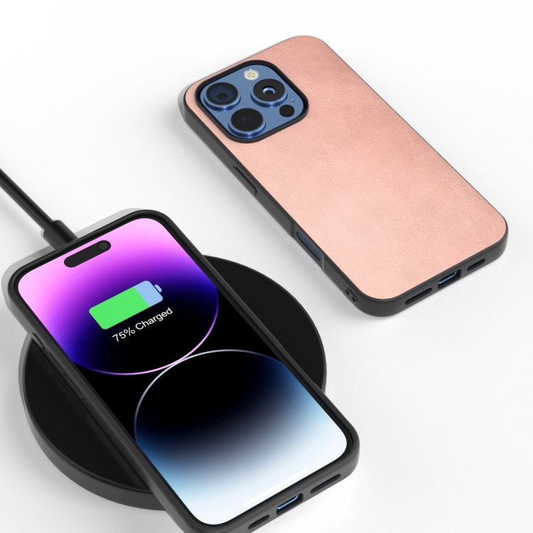 Funda de Teléfono Apple iPhone 16 Pro Textura Piel de Becerro Dos Colores Marco Negro (Rosa)