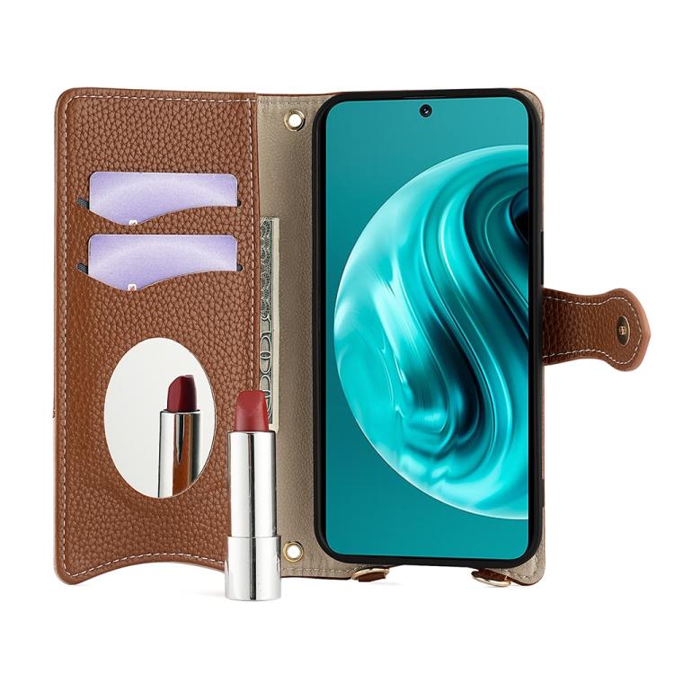 Funda de Cuero de Lichi con Cola de Pez y Cadena Cruzada para Huawei Nova 12I Enjoy 70 Pro (Marrón)