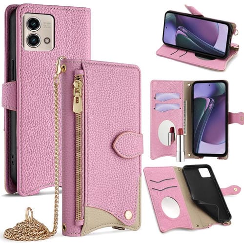 Funda de Cuero con Cadena Cruzada y Diseño Cola de Pez para Motorola Moto G Stylus 5G (2023) (Rosa)