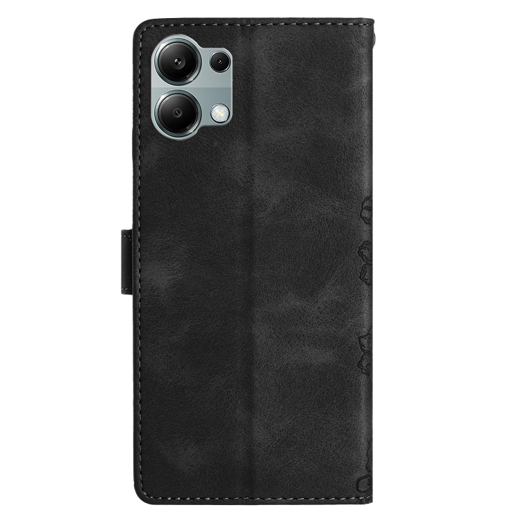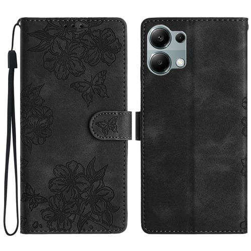 Funda de Teléfono de Pu con Relieve de Piel de Mariposa y Diseño de Flor de Cerezo para Redmi Note 13 Pro 4G (Negra)