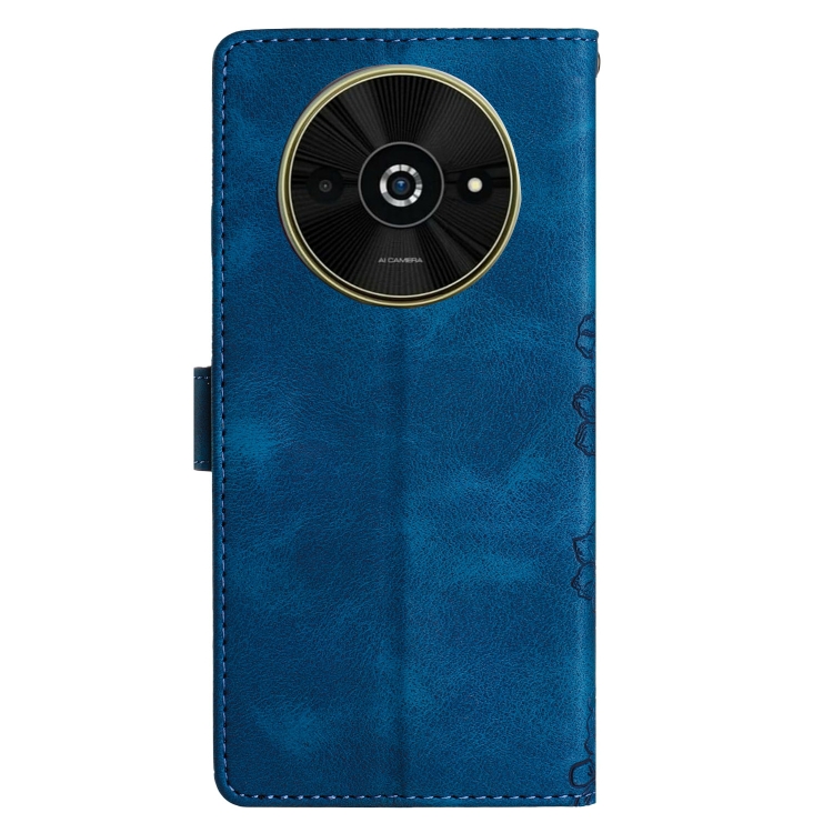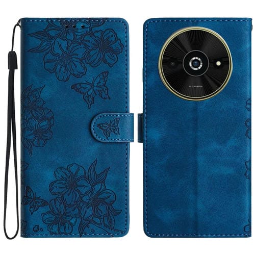 Funda de Teléfono de Pu con Relieve de Piel de Mariposa y Diseño de Flor de Cerezo para Xiaomi Poco C61 (Azul)