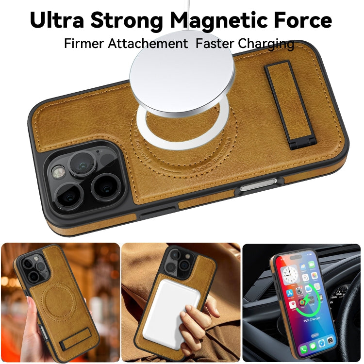 Funda de teléfono Pu con soporte multifunción Magsafe para iPhone 16 Pro (Marrón)