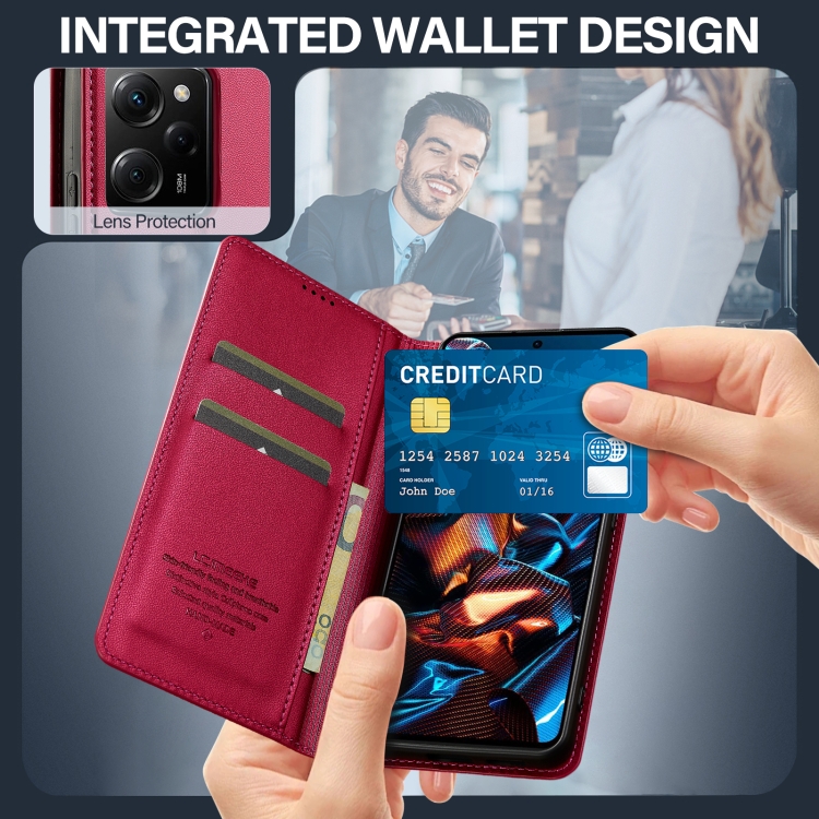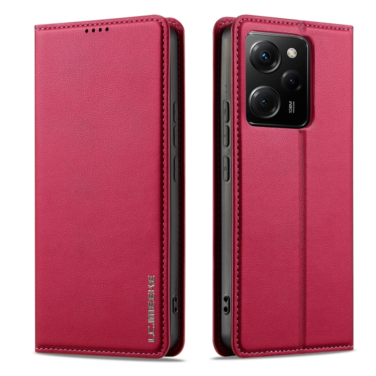 Funda de Teléfono de Pu con Textura Fina Esmerilada para Redmi Note 12 5G Lc.Imeeke L1 Series (Roja)