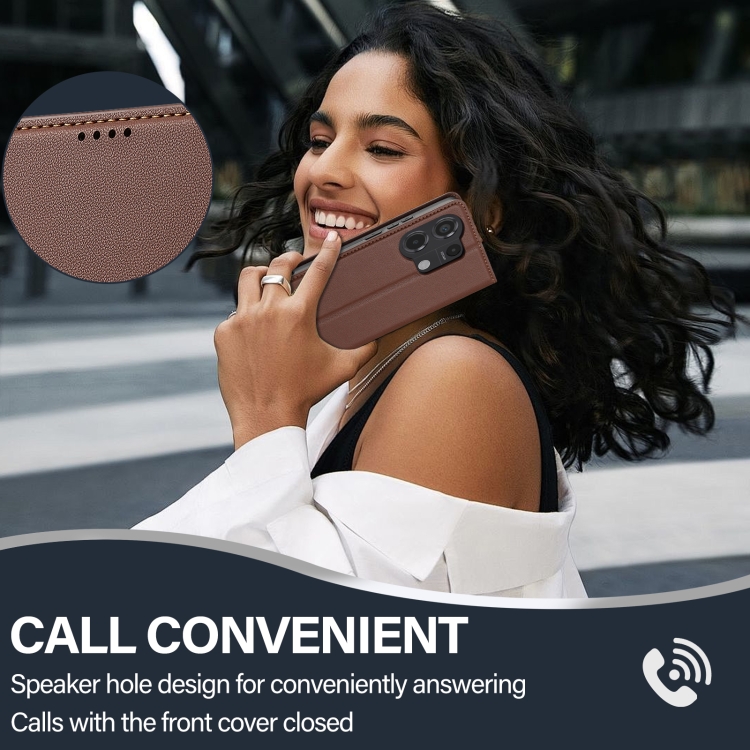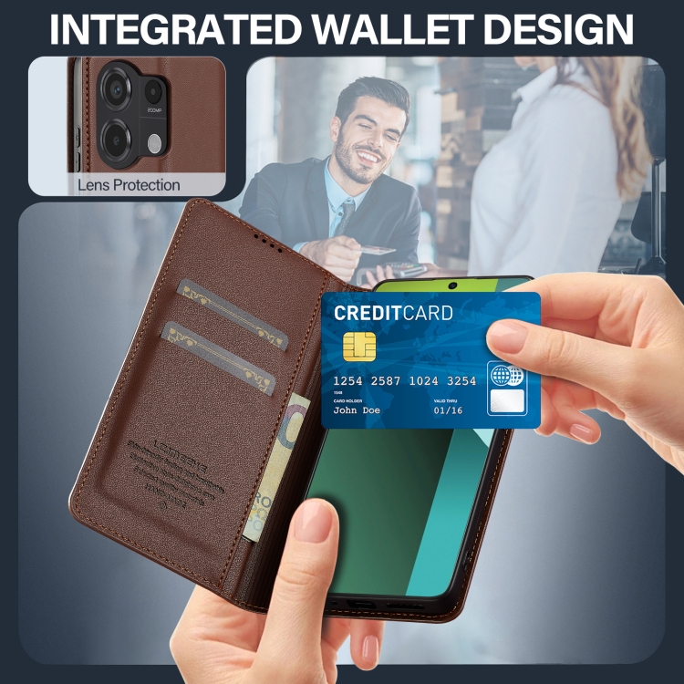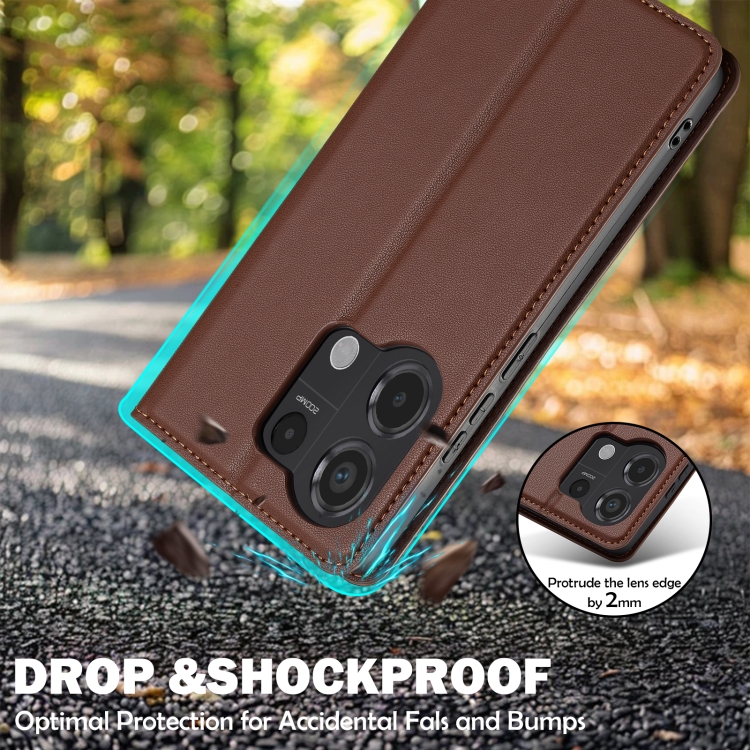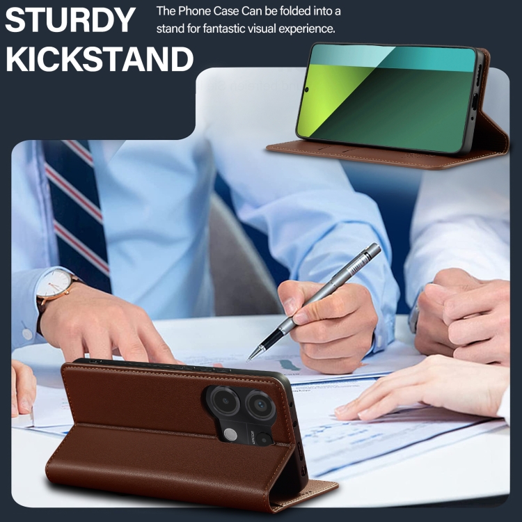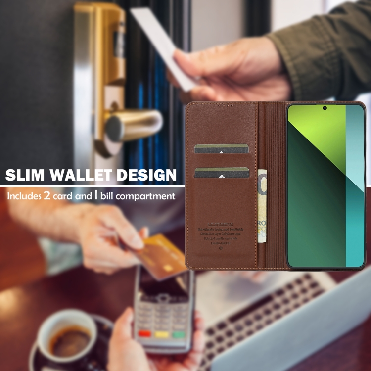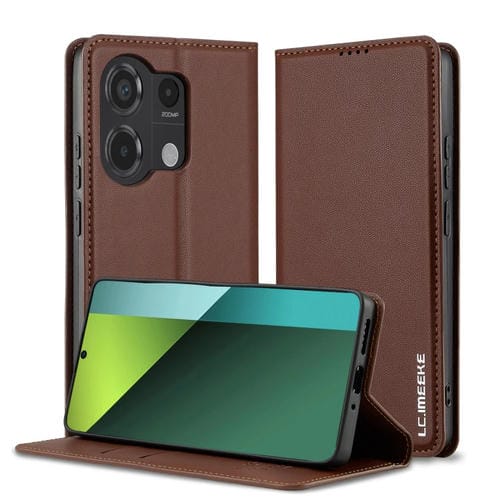 Funda de Teléfono de Pu con Textura Fina Esmerilada para Redmi Note 13 Pro 4G Lc.Imeeke L1 Series (Marrón)