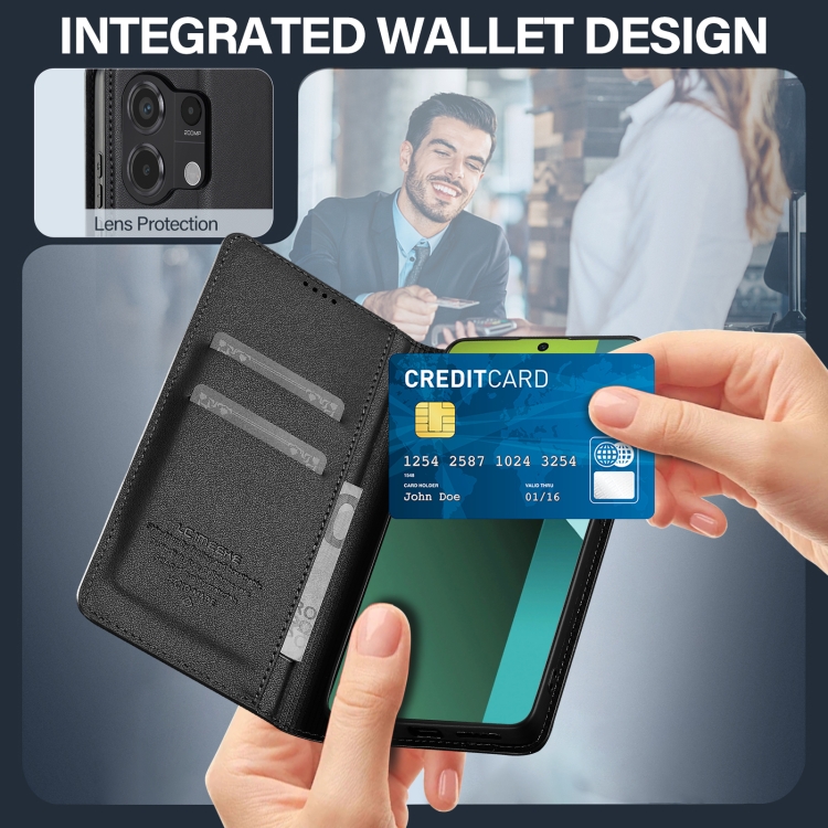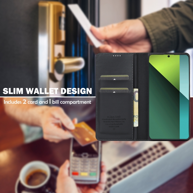 Funda de Teléfono de Pu con Textura Fina Esmerilada para Redmi Note 13 Pro 4G Lc.Imeeke L1 Series (Negra)