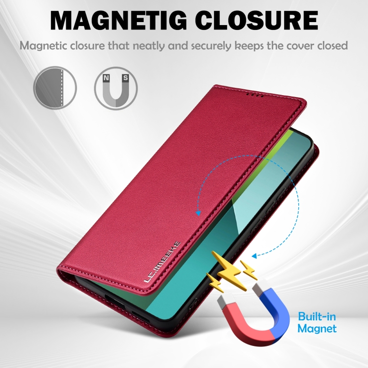 Funda de Teléfono de Pu con Textura Fina Esmerilada para Redmi Note 13 Pro 5G Lc.Imeeke L1 Series (Roja)