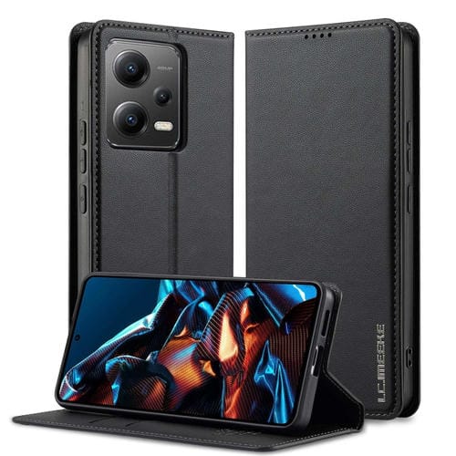 Funda de Teléfono de Pu con Textura Fina Esmerilada para Xiaomi Poco X5 Lc.Imeeke L1 Series (Negra)