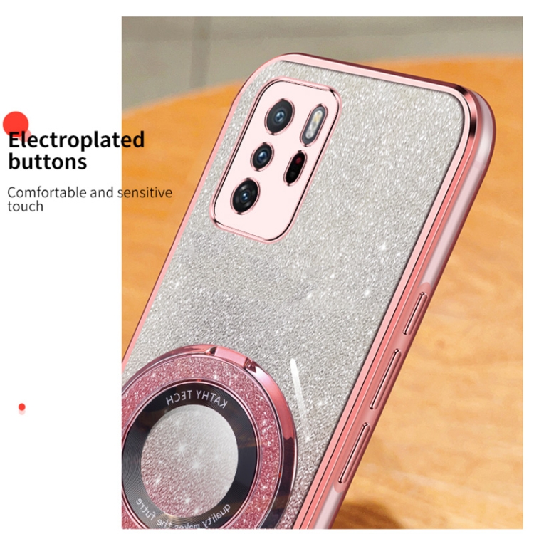 Funda de Teléfono de TPU con Soporte Redondo con Purpurina Degradada Plateada para Redmi Note 10 Pro 5G (Morado)