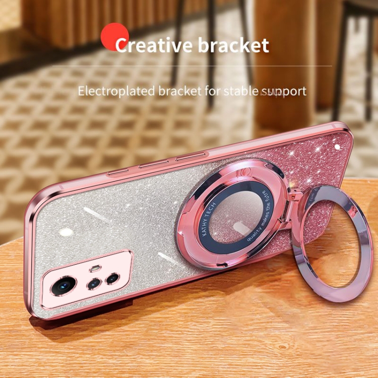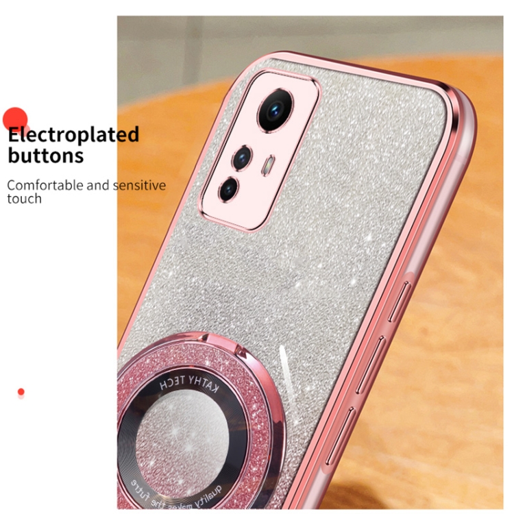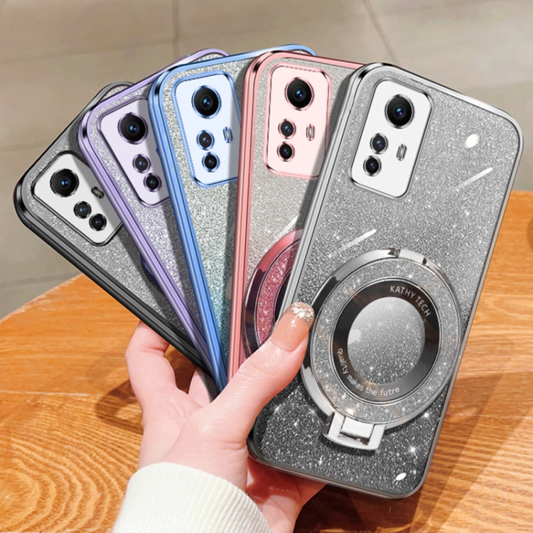 Funda de Teléfono de TPU con Soporte Redondo con Purpurina Degradada Plateada para Redmi Note 12S (Morado)